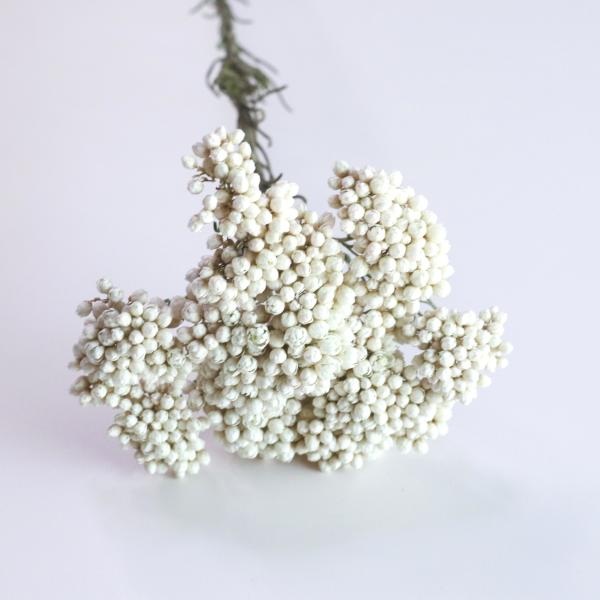 ドライフラワーになってもくすみなく美しい白色のままなのが嬉しいお花です。