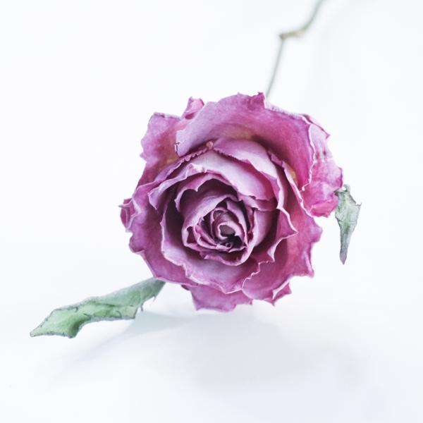 スタンダードローズのような大きなお花は中までしっかり乾燥させるように注意します。乾燥したかどうかはガクの下のお花の付け根あたりを指の爪でキュッと押してみて確認します。カチカチに硬くなっていたらOKです。
