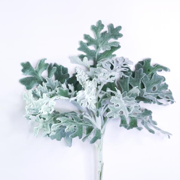 白い花の生えたシルバーリーフのシロタエギクは年中出回っており、丈夫で育てやすいため家庭などでも簡単に栽培が可能です。