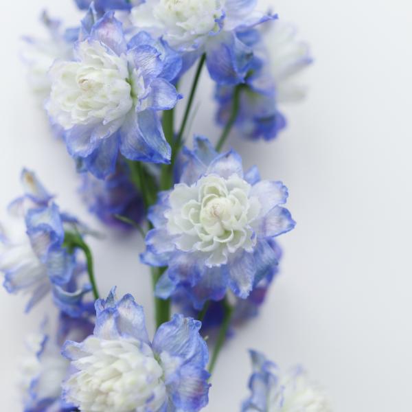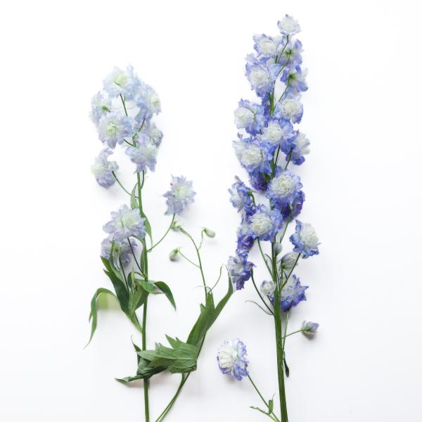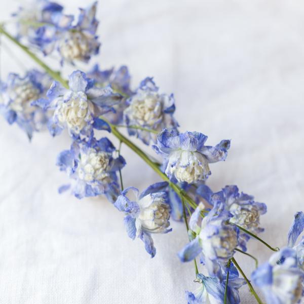 ちょっと珍しい、八重咲きのデルフィニウム。 吊るしてヒーター乾燥をしても比較的綺麗に開いたままのドライフラワーに仕上がります。 より開いた状態で仕上げるなら、フードドライヤーでの制作もオススメですよ! フードドライヤーを使ったドライフラワー作り 色褪せにくさ★★★★☆ 乾燥しやすさ★★★☆☆ 葉や花の落ちにくさ★★★☆☆ 花言葉あなたを幸せにします