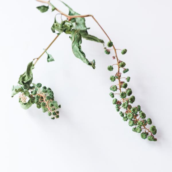 紫色の実が有名なヨウシュヤマゴボウですが、ドライにする場合は緑色の状態か、少し紫がかってきた頃がオススメです。