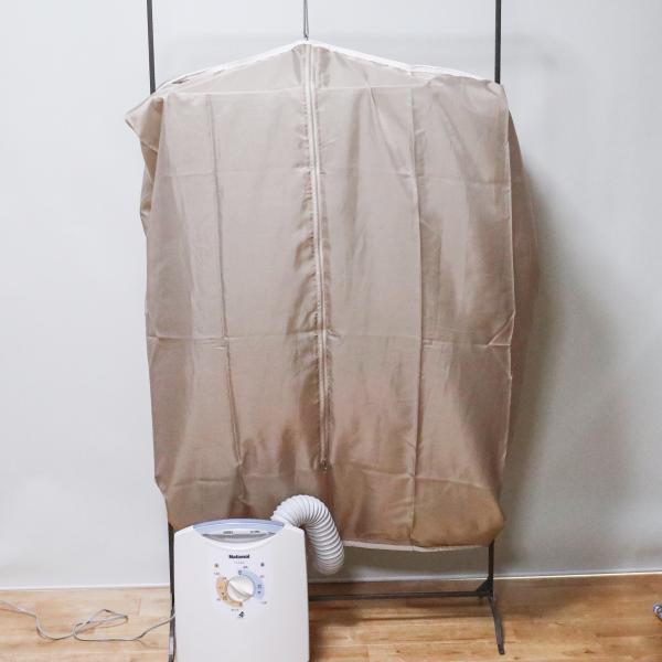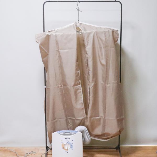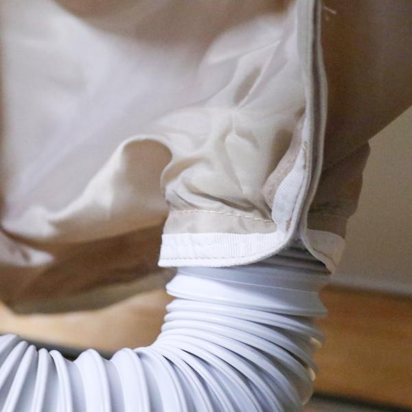 ピンチハンガーに衣類乾燥袋をかけ、下の穴に布団乾燥機を接続します。