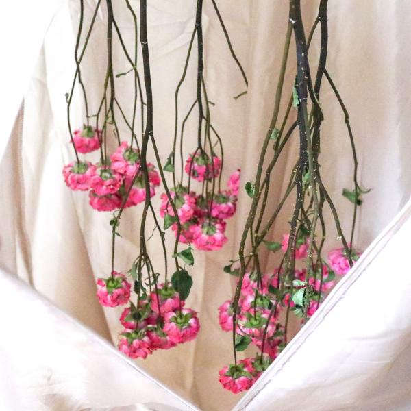 ここに水揚げ済みのお花を吊るしていきます。