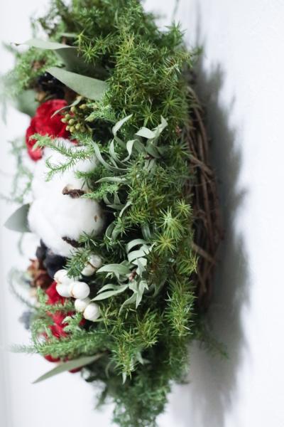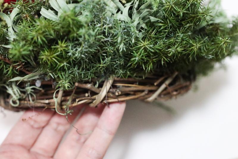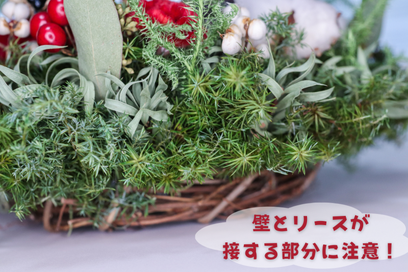 このことから、リースベースに花材を付ける時には、なるべく花材が壁などに接さないようにすることが大切です。