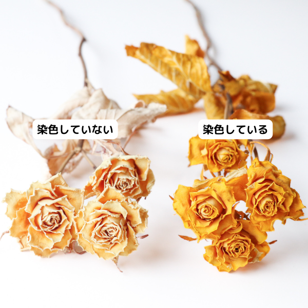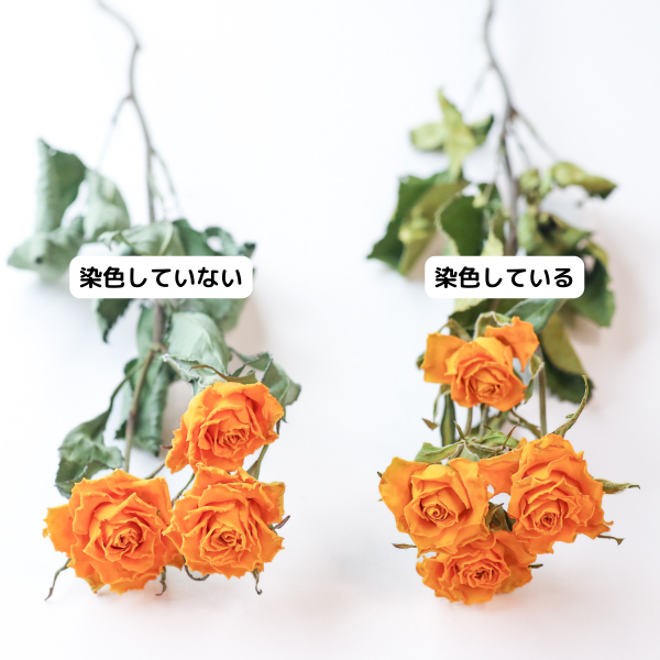 染色していないものと比べてもお花には大きな差は見られず、不自然な感じもしないかと思います。
