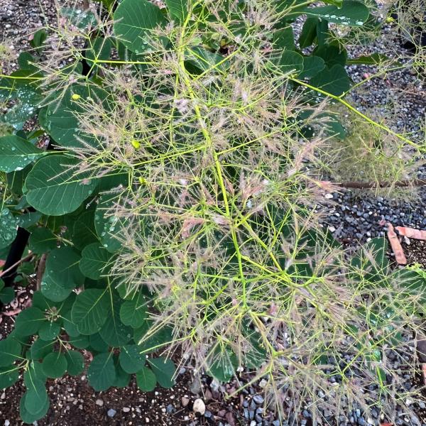 スモークツリーは雌雄異株で、もくもくとした煙がつくのは雌木のみです。