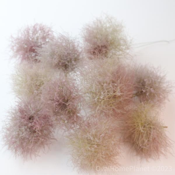 スモークツリーは収穫が早すぎるとくしゃくしゃに縮んでしまい、キレイなドライフラワーになりません。