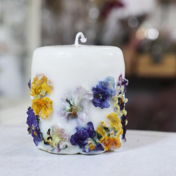 できあがったドライパンジーを使ってボタニカルキャンドルを作ってみました。