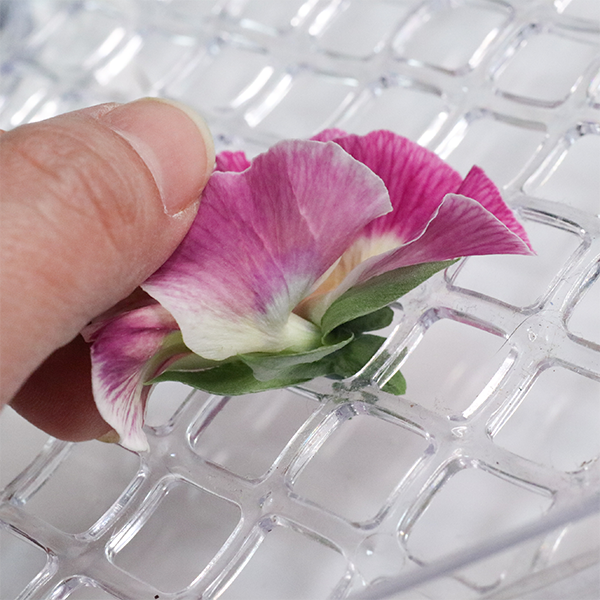 一段並べ終わったら、その上に網を重ねてまたお花を並べていきます。