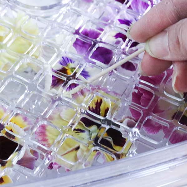 折れ曲がっている花びらがあれば爪楊枝などで直します。