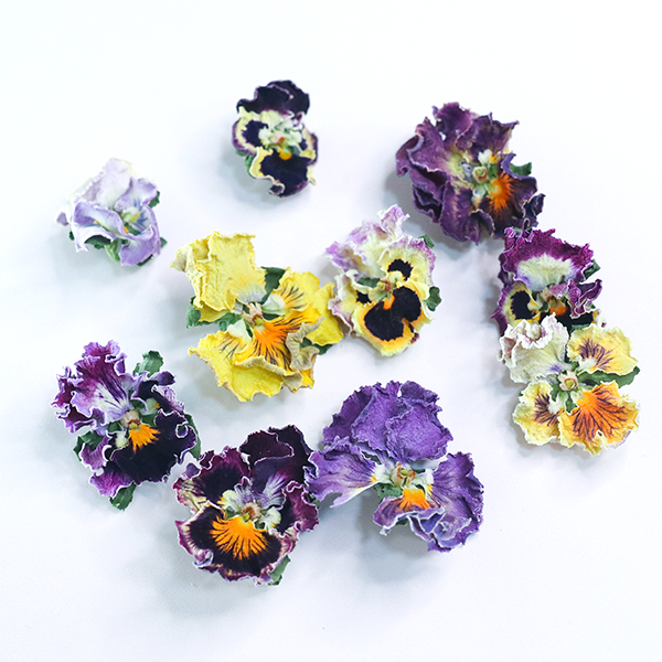 この方法ではお花がかなり縮んで小さくなります。そのため、ビオラよりも大きなパンジーを使うことをオススメします。